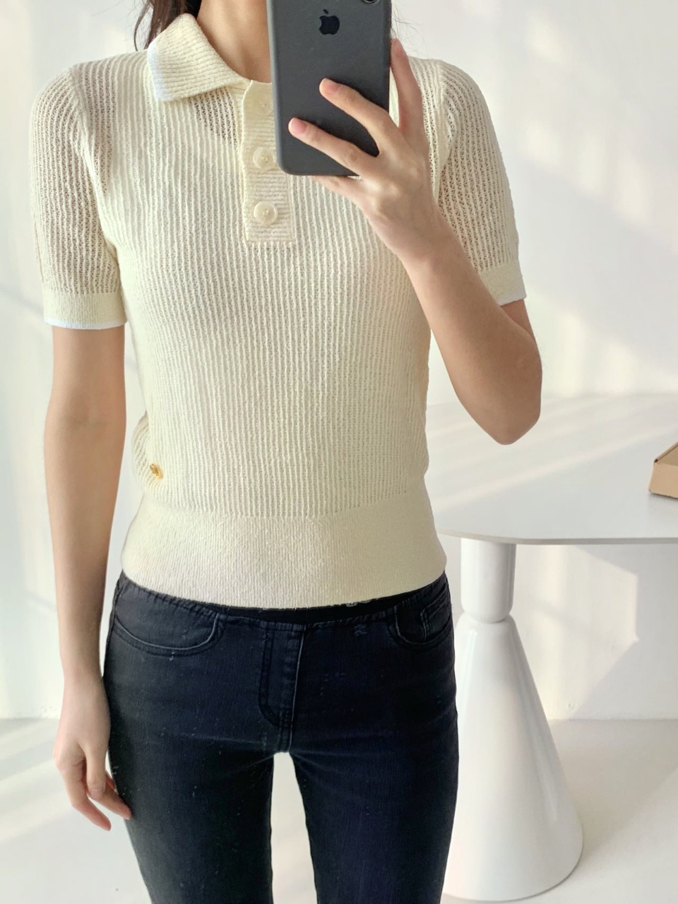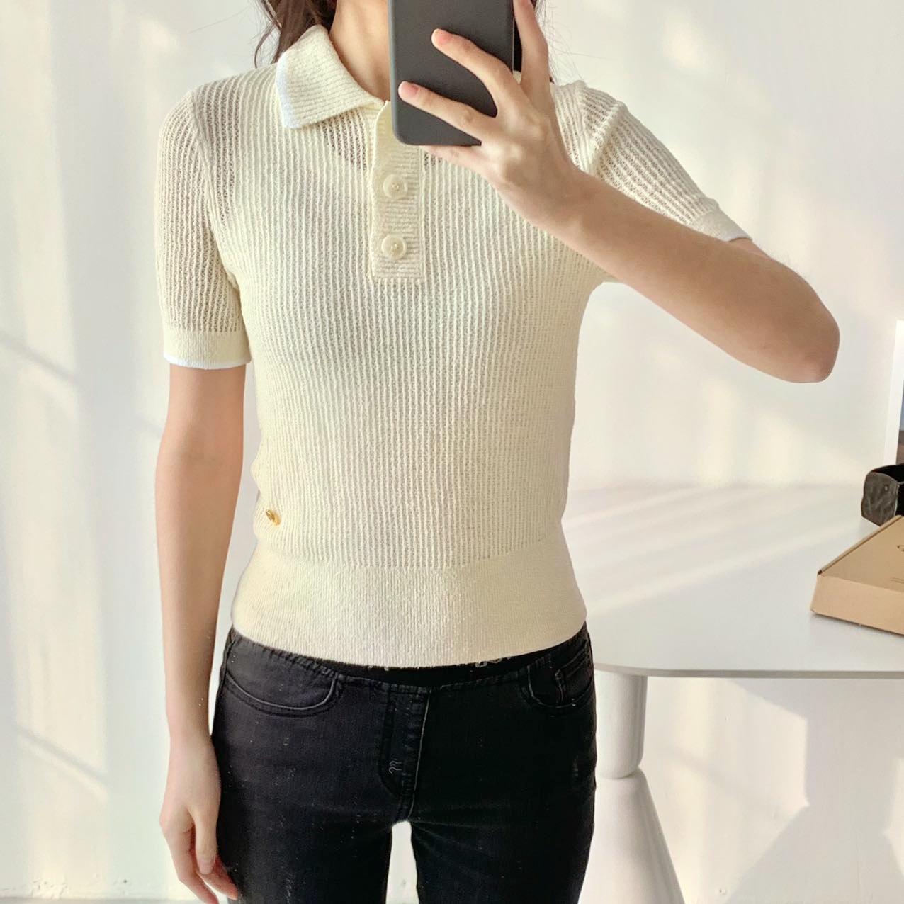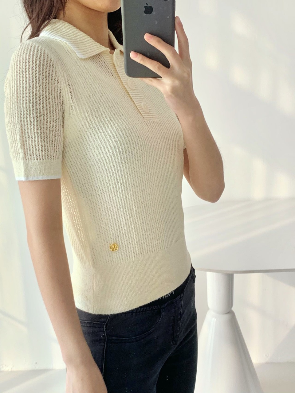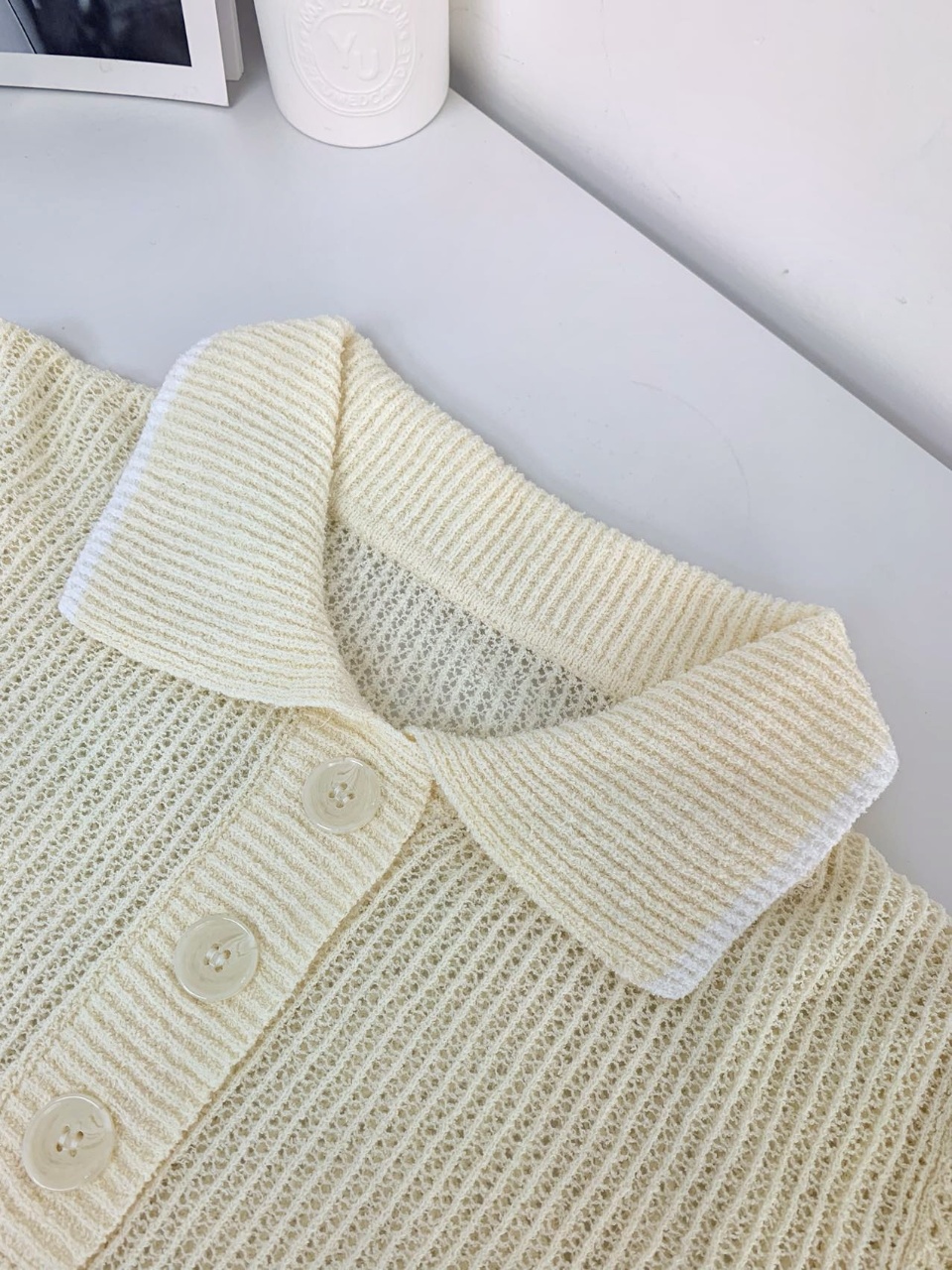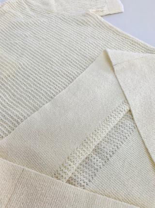 罗纹收束衣摆,整体90年代钩针风透感网织设计复古优雅,隐约朦胧的透感效果展现女性魅力。