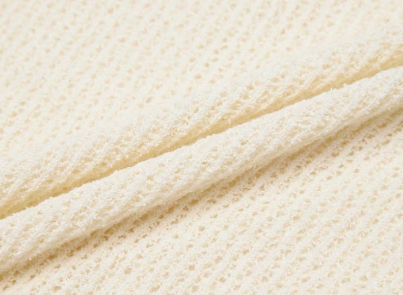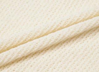 主要采用棉和尼龙混纺纱线,微弹小圈圈花式纱线16针横机工艺,圈形小巧紧密,柔美细致,手感柔软厚实,富有弹性,纱线的棉成分使成衣具有吸湿性好,柔软透气轻盈的特点,纱线混合了尼龙纤维,让纱线有微弹效果,更有骨感和质感,使衣服的持久性更好,不易变形,立体层次感的外观个性时尚。