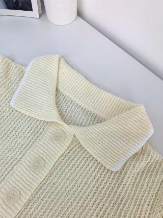 撞色复古Polo领设计,搭配低饱和度色系自带清新文艺气质,前中三粒花纹树脂扣精美别致,凸显细节质感。